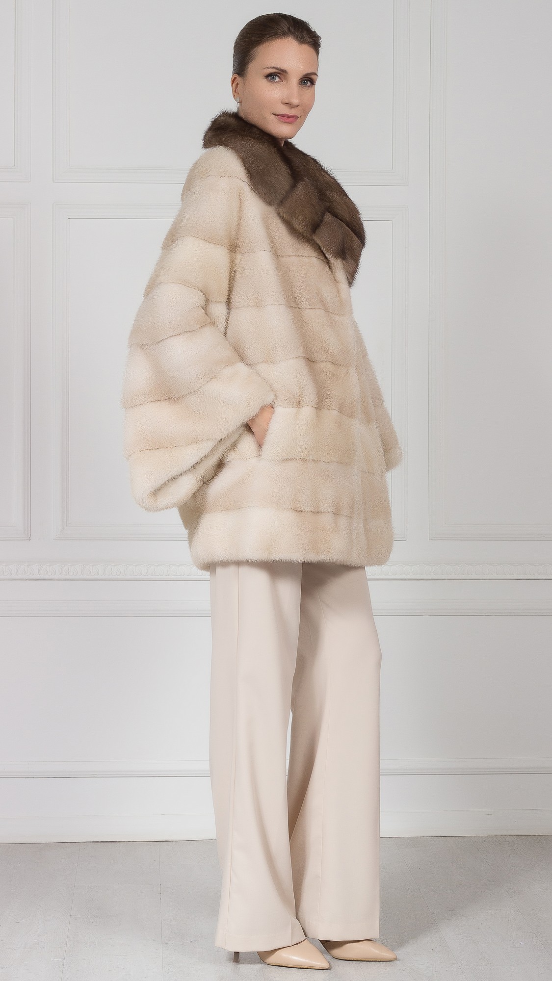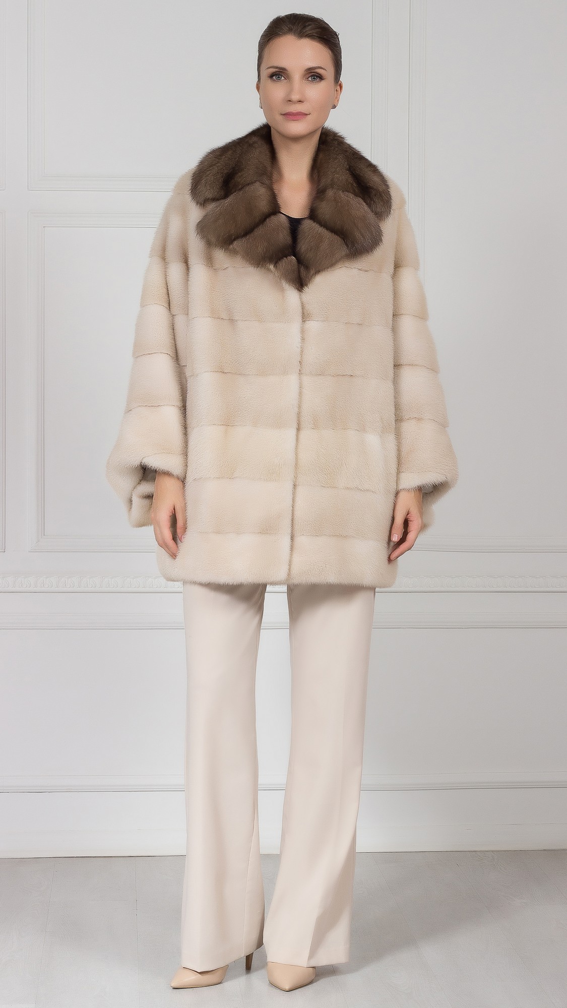 Шуба из меха норки, отделка соболь