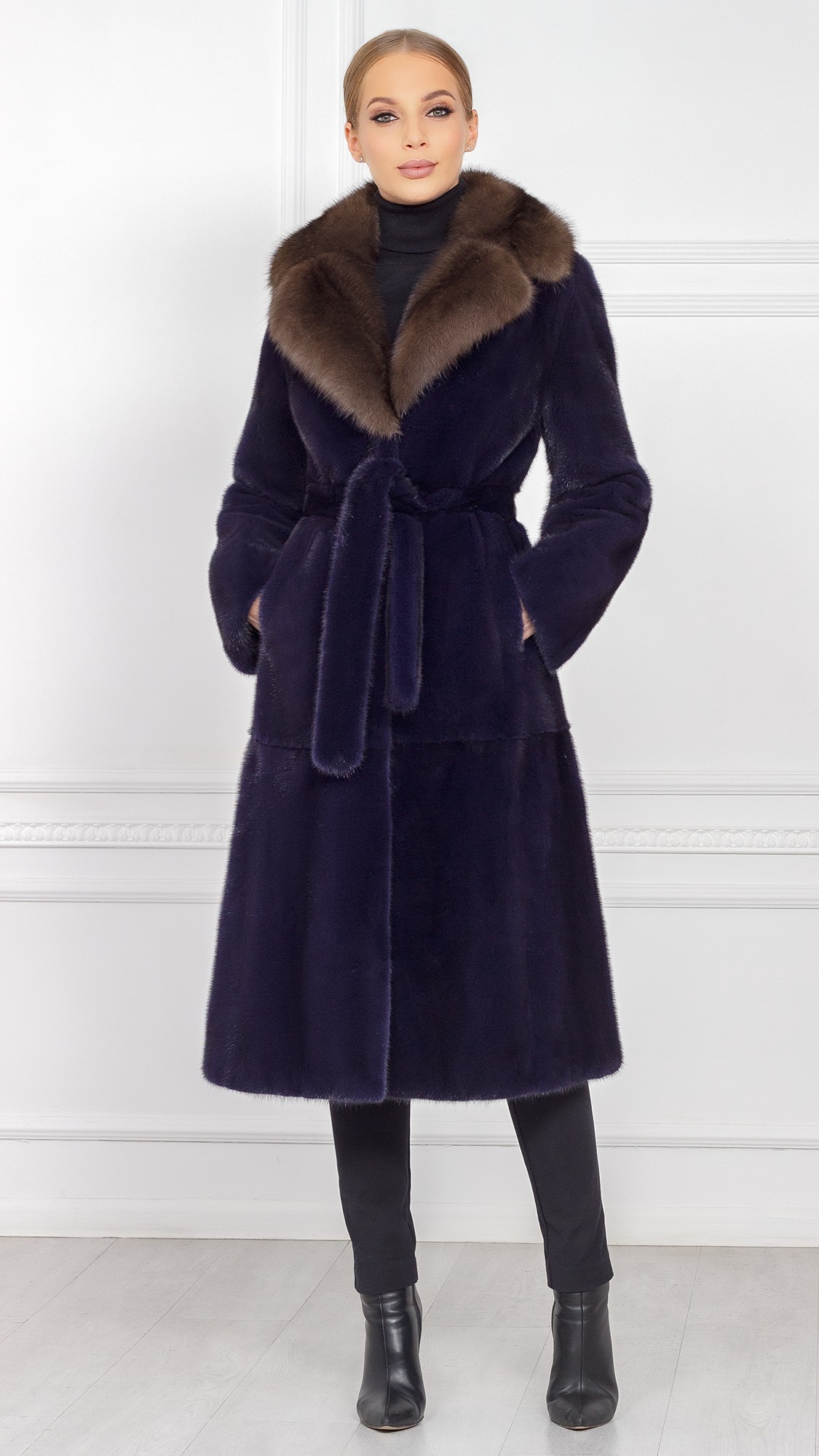 Шуба из меха норки, отделка соболь