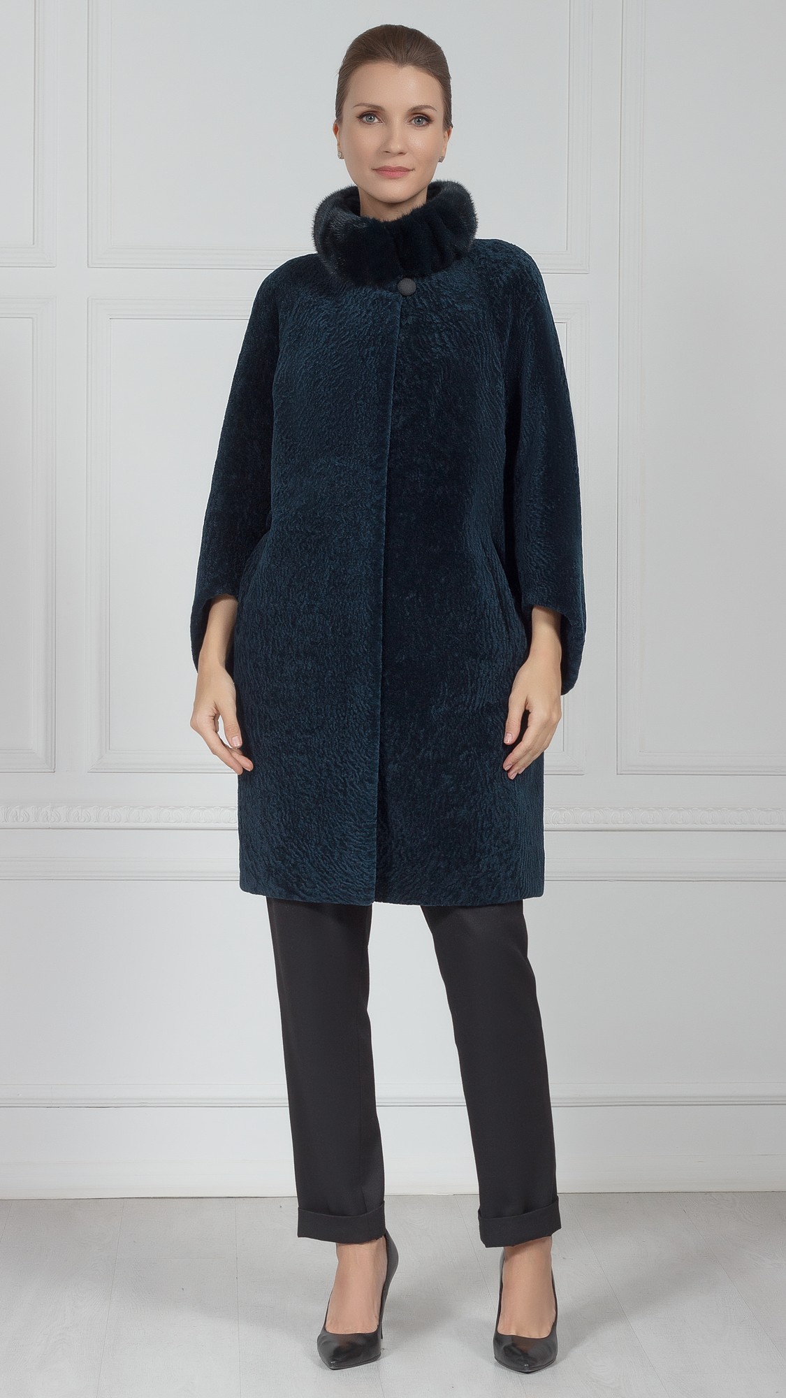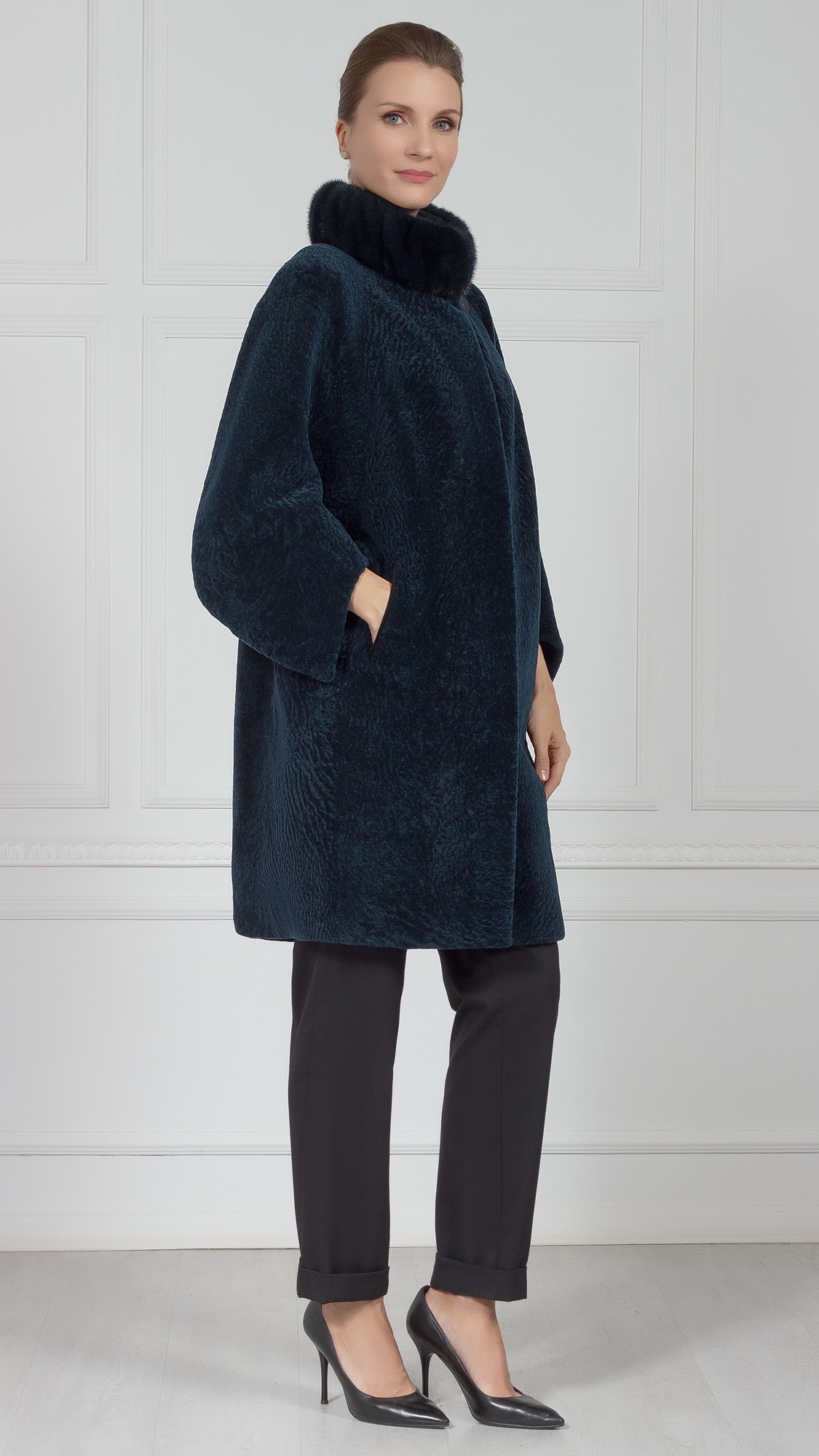 Шуба из овчины, отделка норка