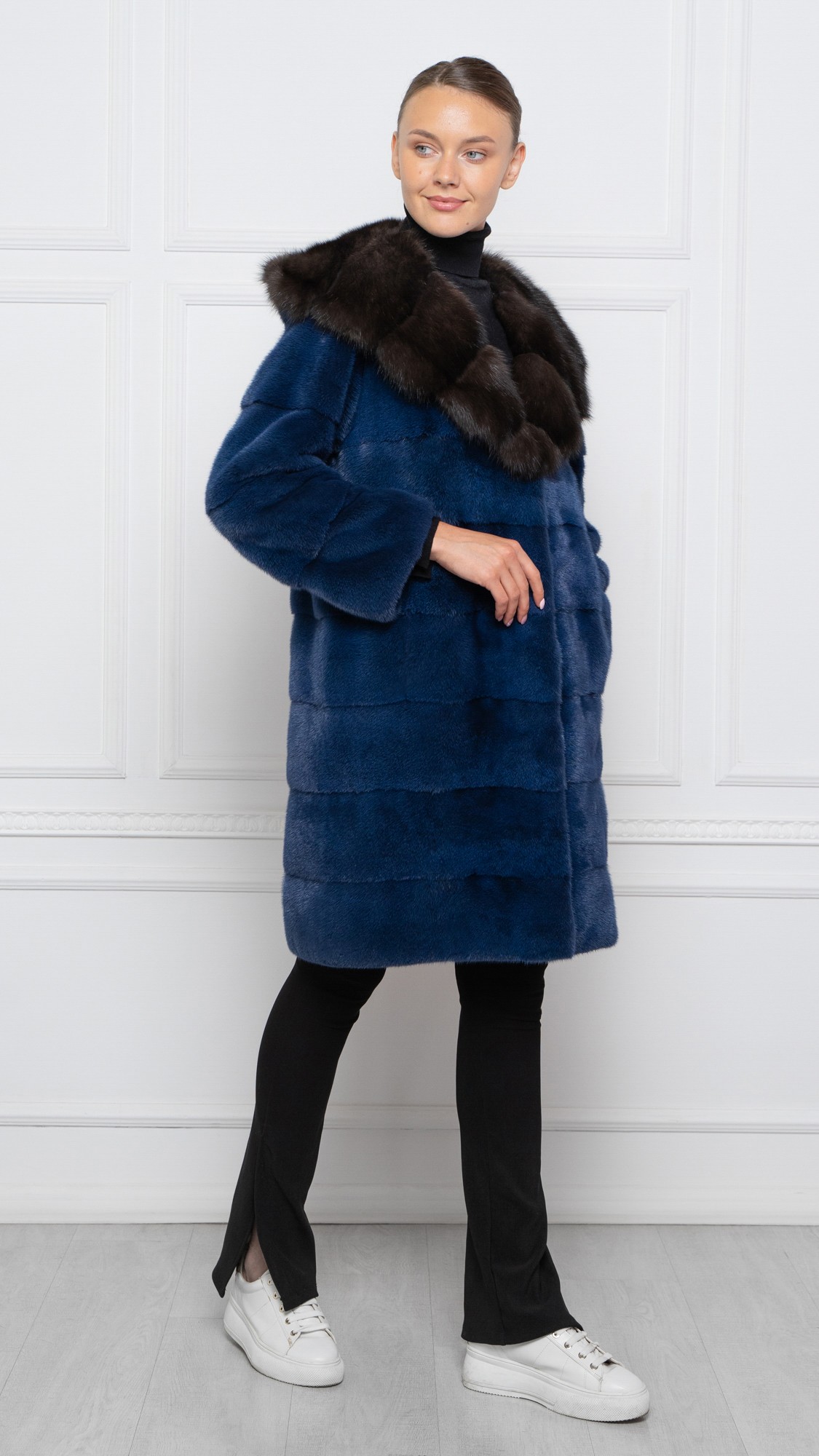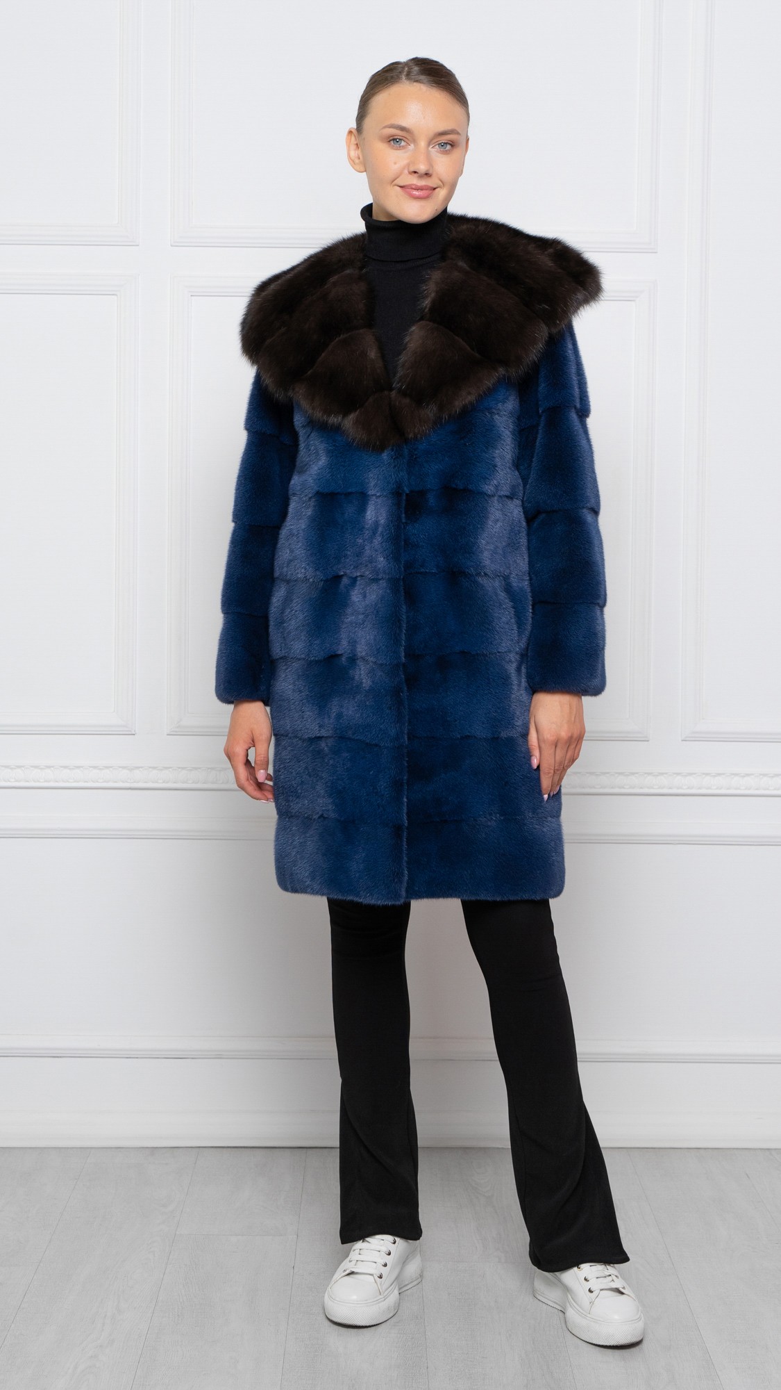 Шуба из меха норки, отделка соболь